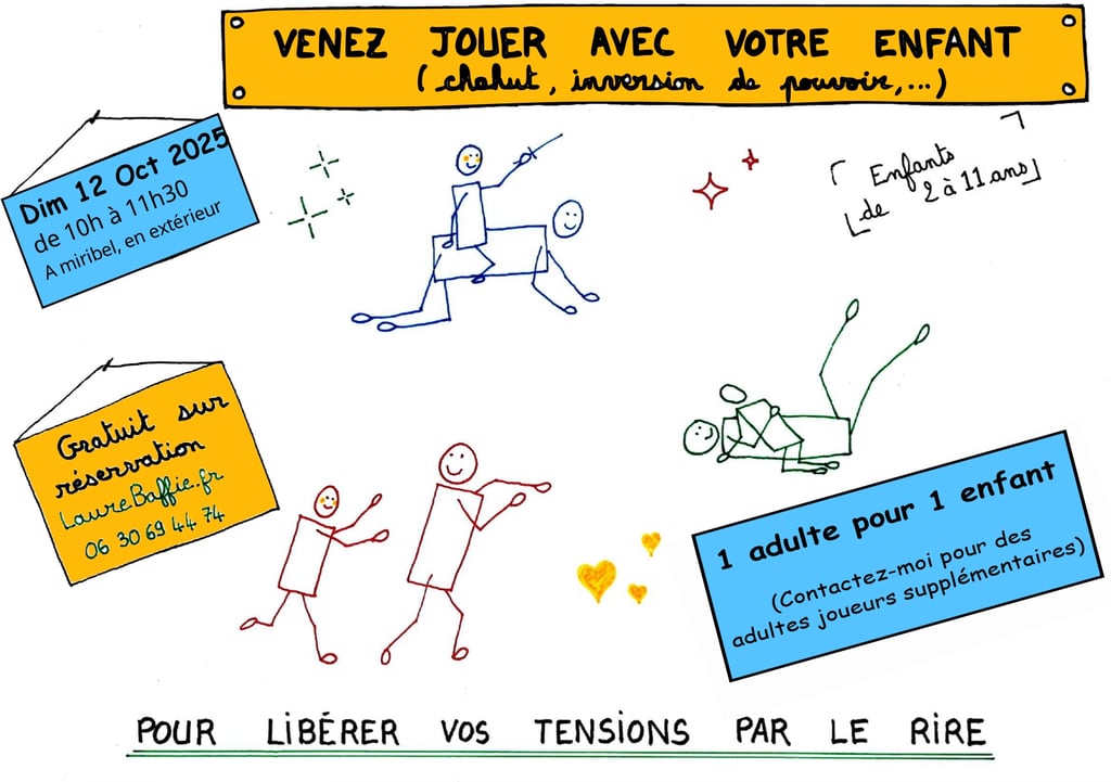Venez jouer avec votre enfant (chahut, inversion de pouvoir, etc.), pour libérer ses tensions, et les vôtres, par le rire !