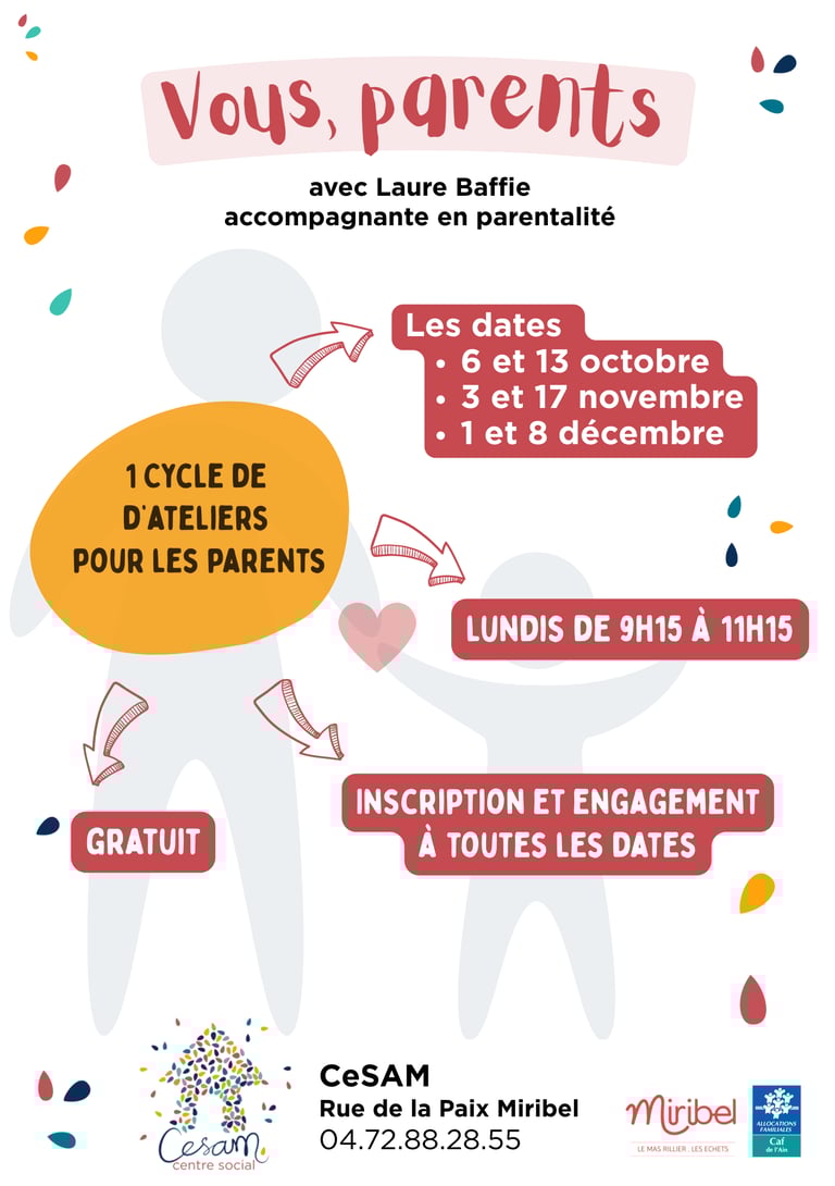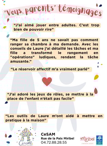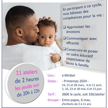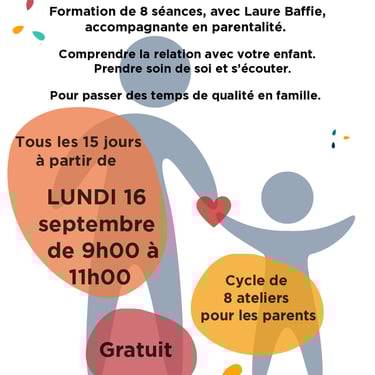 Cycle de 11 ateliers de 2h, visant au développement des compétences parentales (Détails et tarif à l'onglet "Parents")